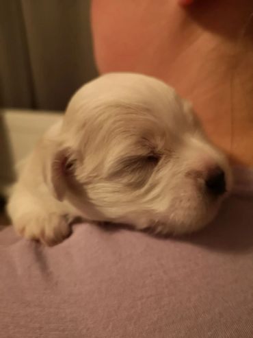 Une belle petite femelle nommée Coton de Neige Signature Benaroch Alias Sky (pour Skywalker, née May fourth)